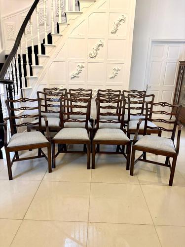 Antique Set of 12 Mahogany Chippendale Style Ladder Back Dining Chairs – 10 Singles & 2 Carvers