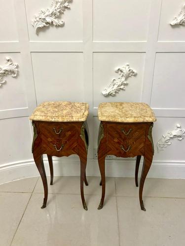Exceptional Antique Pair of Louis XV Style Kingwood and Marble-top Bedside Cabinets