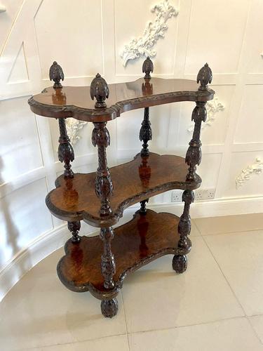 Rare Irish Antique Victorian Exhibition Quality Freestanding Burr Walnut Carved Whatnot