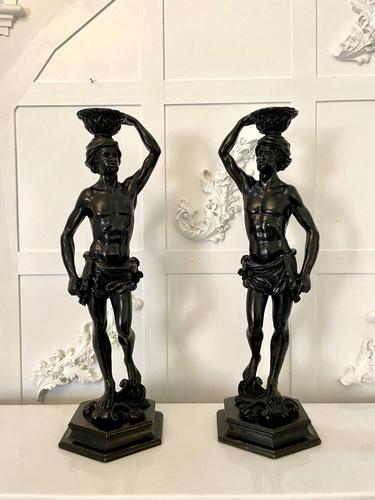 Fine Pair of Antique Victorian Carved Ebonised Figures