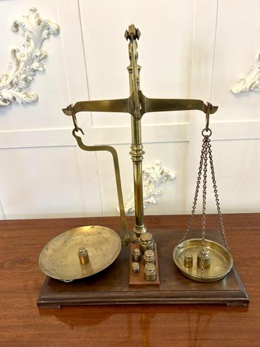 Antique Victorian Apothecary Balance Scales Brass Mahogany Day & Millward Complete with Weights