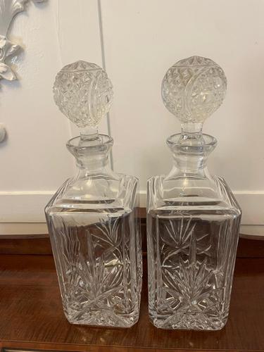 Pair of Antique Victorian Quality Cut Glass Decanters