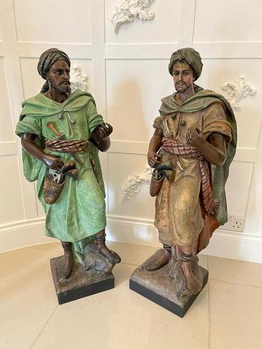 Spectacular Pair of Large Antique Quality Orientalist Polychromed Plaster Arabesque or Moorish Figures