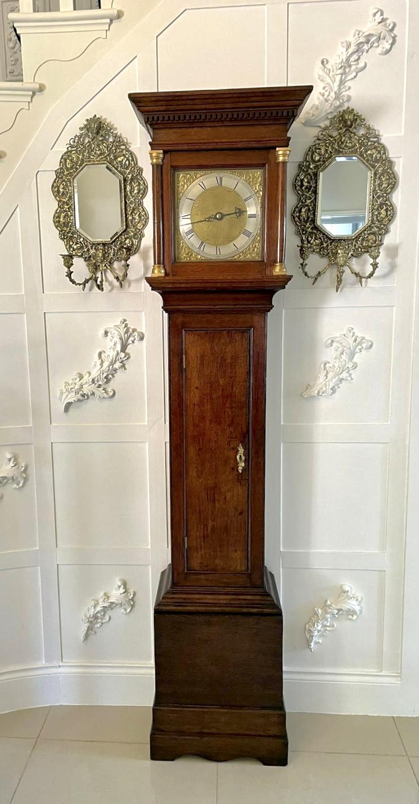 18th Century Quality Antique Oak Brass Face Longcase Clock by Benjamin Reeves, Lamberhurst