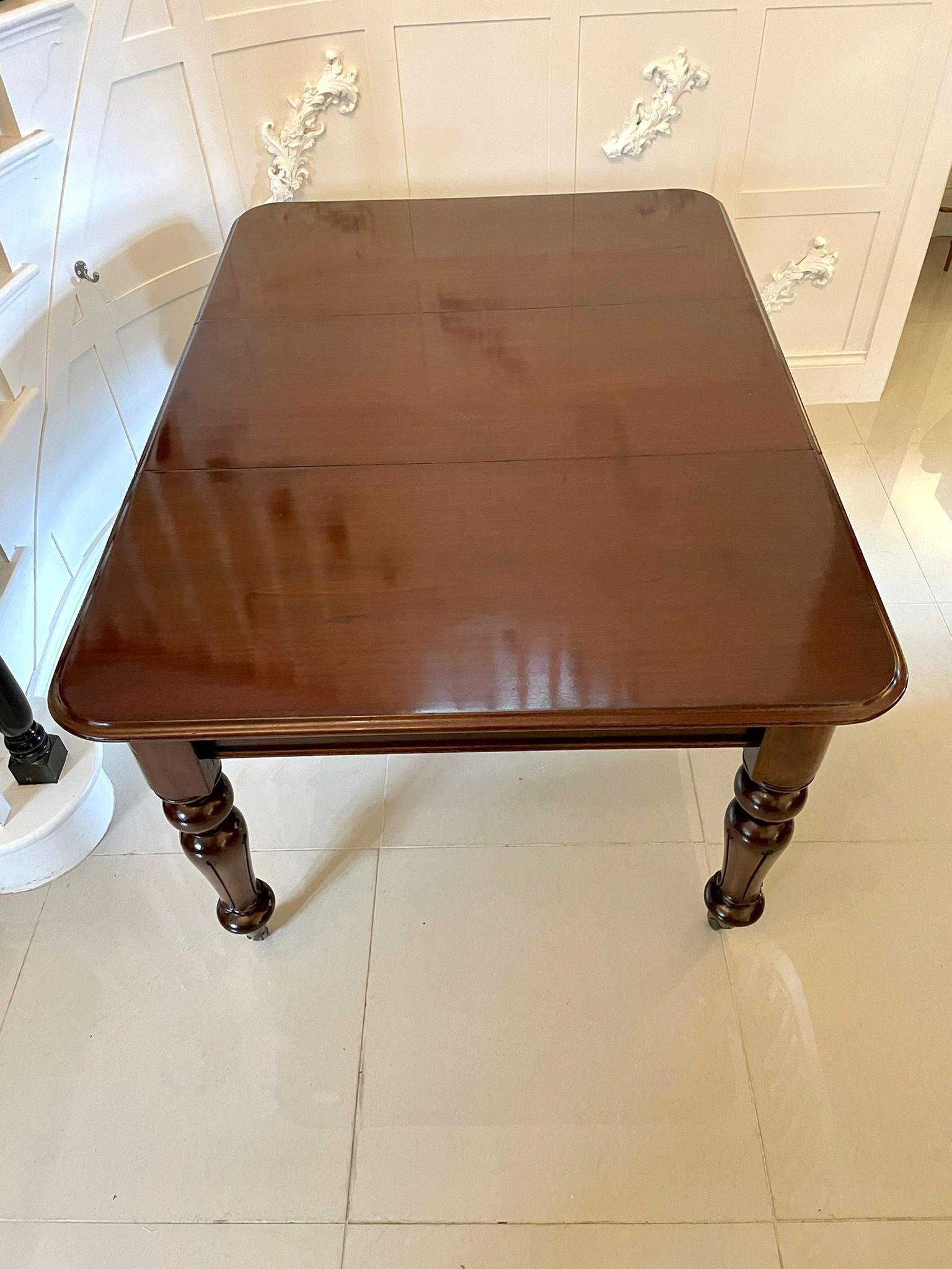 Antique William IV mahogany extending dining table having a quality mahogany top with a moulded edge and one original extra leaf. It stands on lovely shaped tulip legs with original brass castors.