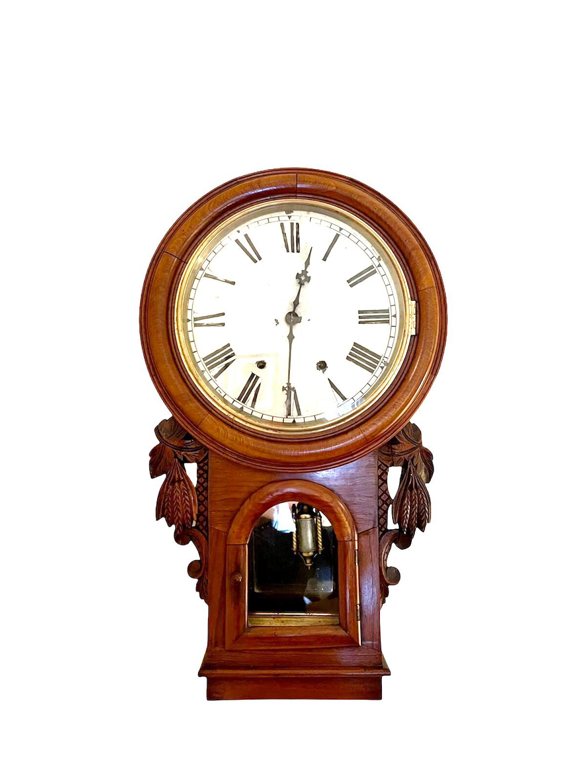 Antique Victorian Carved Walnut Eight Day Wall Clock