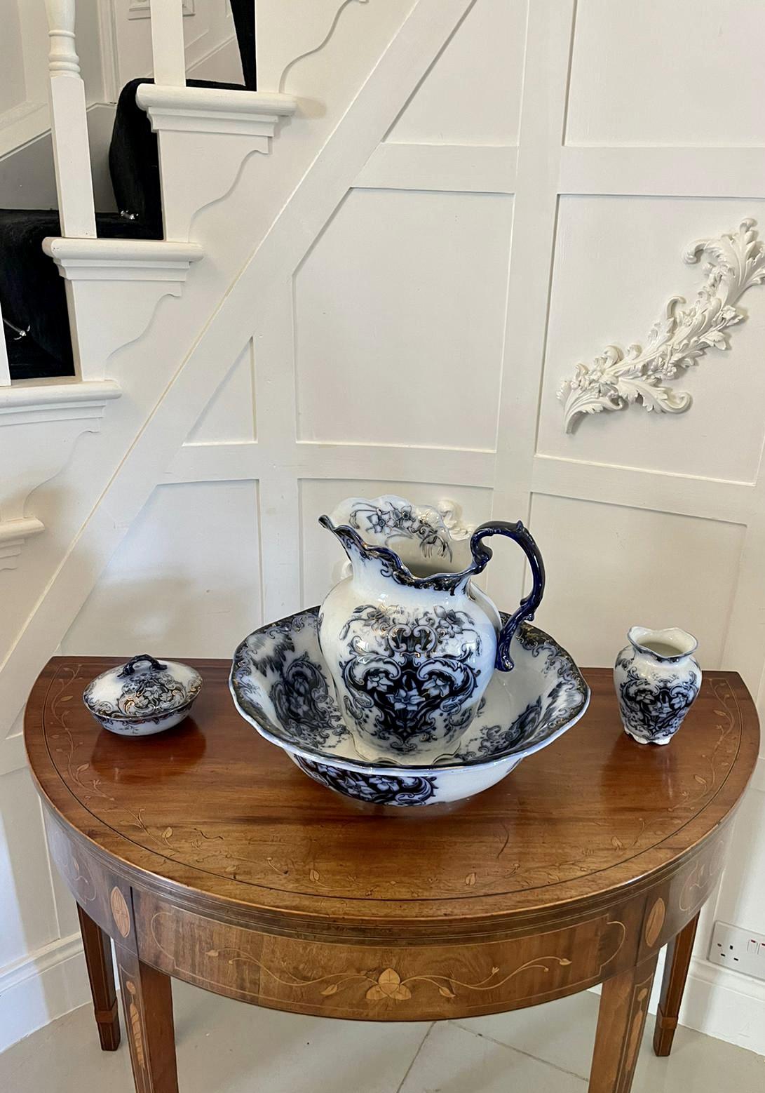 Antique Victorian Quality Blue & White Jug + Bowl Set