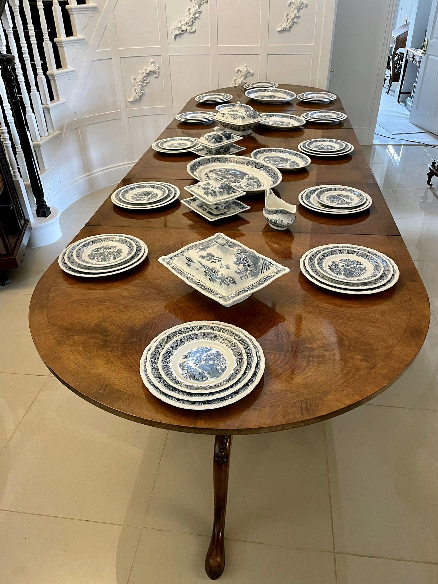 Fabulous 12 place setting antique Victorian quality blue and white dinner service, mandarin in pattern made by Bristol Alkalon China consisting of 12 large dinner plates, 12 luncheon plates, 12 side plates, gravy boat, 5 oval meat plates, 2 large lidded tureens, 2 small lidded tureens, original ladles and stand in wonderful blue and white colours in perfect condition.